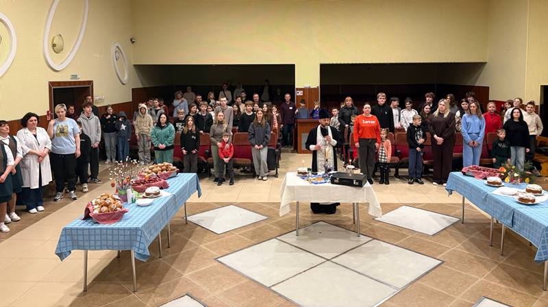 12 апреля на светлый праздник Пасхи санаторий «Росинка» с особым теплом и гостеприимством встретил дорогого гостя - духовного наставника, благочинного Миорского района, отца Виктора. Отец Виктор совершил традиционный обряд освящения пасхальных яиц и куличей, наполнив зал светом, радостью и верой. В сердцах каждого осталась частичка тепла, надежды и любви, подаренная в этот светлый день. Сердечно и проникновенно прозвучали слова : «Христос Воскресе! - Воистину Воскресе!»