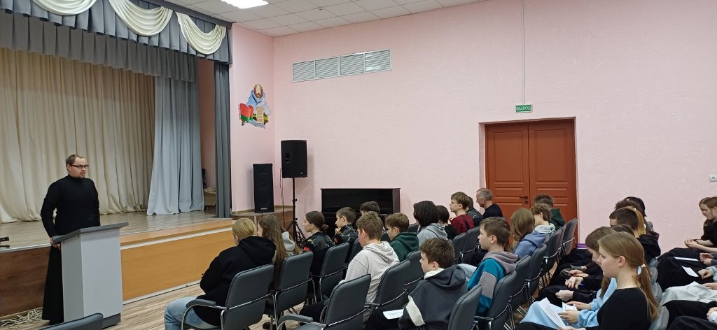 13 декабря в ГУО «Миорская средняя школа №3 имени Героя Советского Союза Егора Андреевича Томко» для учащихся 8-11 классов прошёл диспут «Жить здорово!». По благословению благочинного Миорского церковного округа протоиерея Виктора Вабищевича в мероприятии принял участие клирик храма Положения ризы Пресвятой Богородицы во Влахерне г. Миоры диакон Дионисий Лавринович. Инициатором и ведущей встречи была социальный педагог Марина Шинкевич, которая предложила ребятам задуматься о том, что помогает человеку сохранять внутреннее равновесие и духовное здоровье.