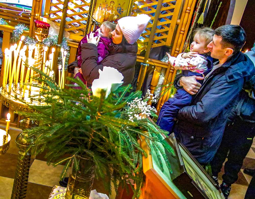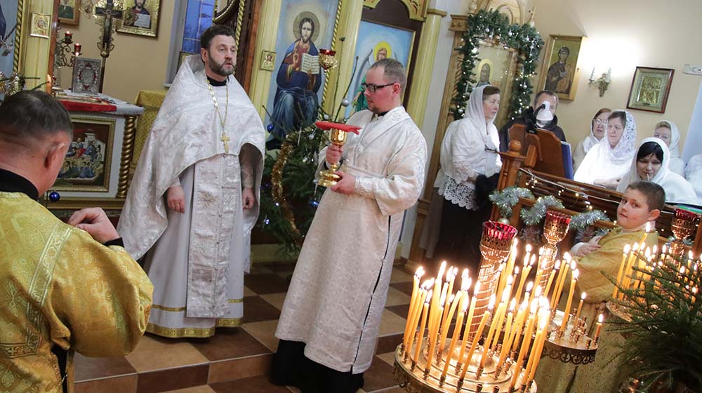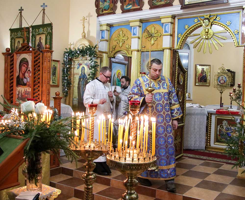 Фоторепортаж праздничного Рождественского богослужения в храме Положения ризы Пресвятой Богородицы во Влахерне г. Миоры.